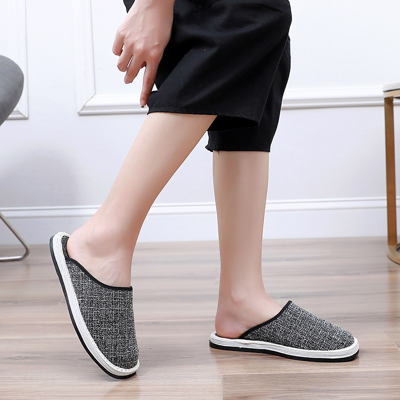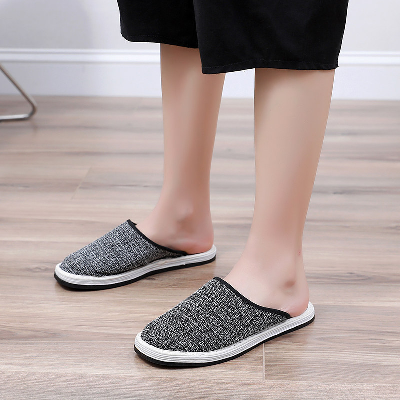 Cloth bottom cotton and linen slippers women's spring and autumn Baotou four seasons home non-slip gray layer bottom comfortable light cloth shoes women's shoes