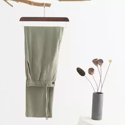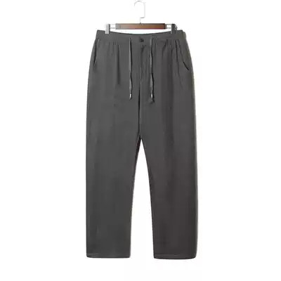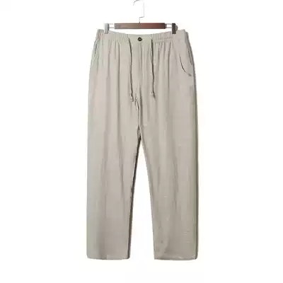 Summer thin men's linen casual trousers men's elastic high waist cotton linen pants men's fat plus size pants