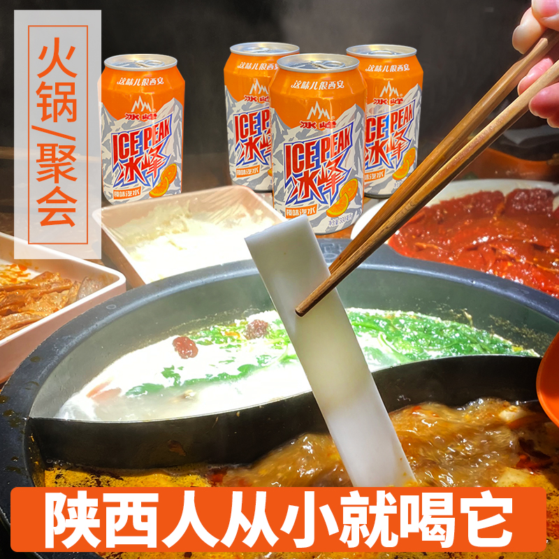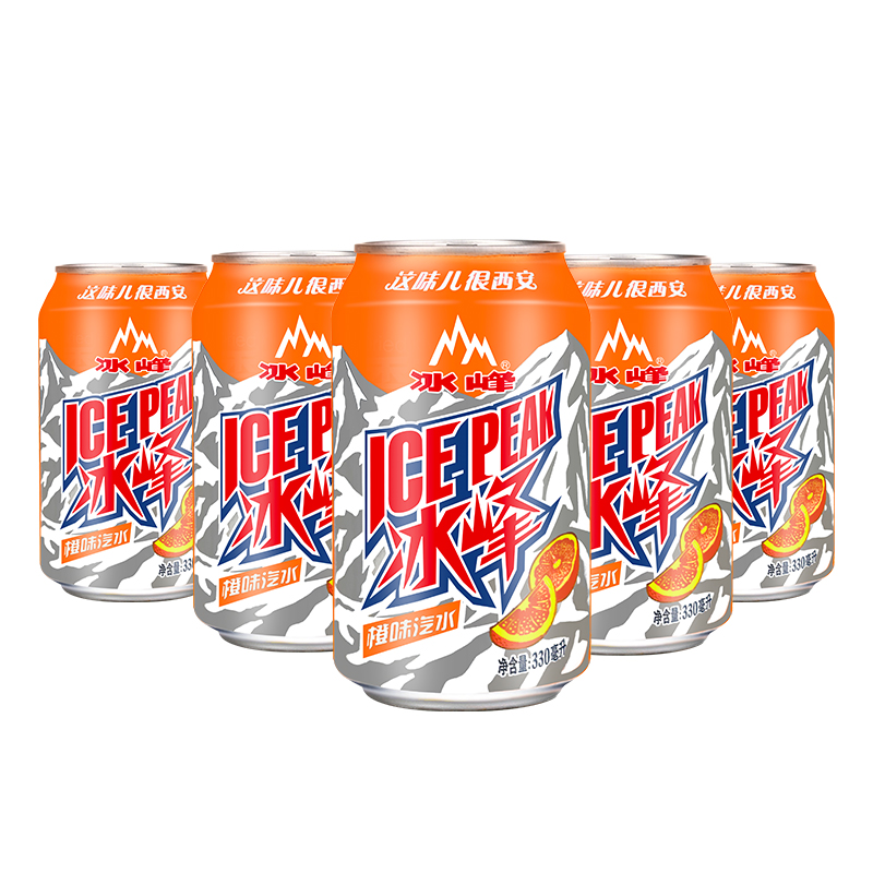 Shaanxi Ice Peak Carbonated Drink 330ml Tank Xi'an Ice Peak Orange Taste Soda Sour Plum Soup Ice Sealed Carbonated Drink
