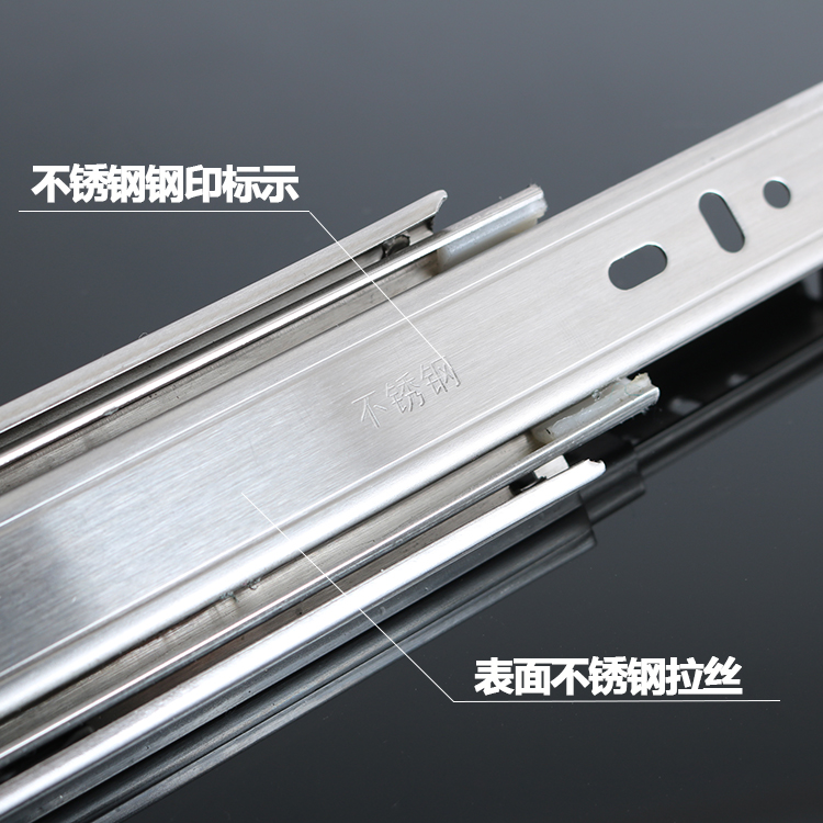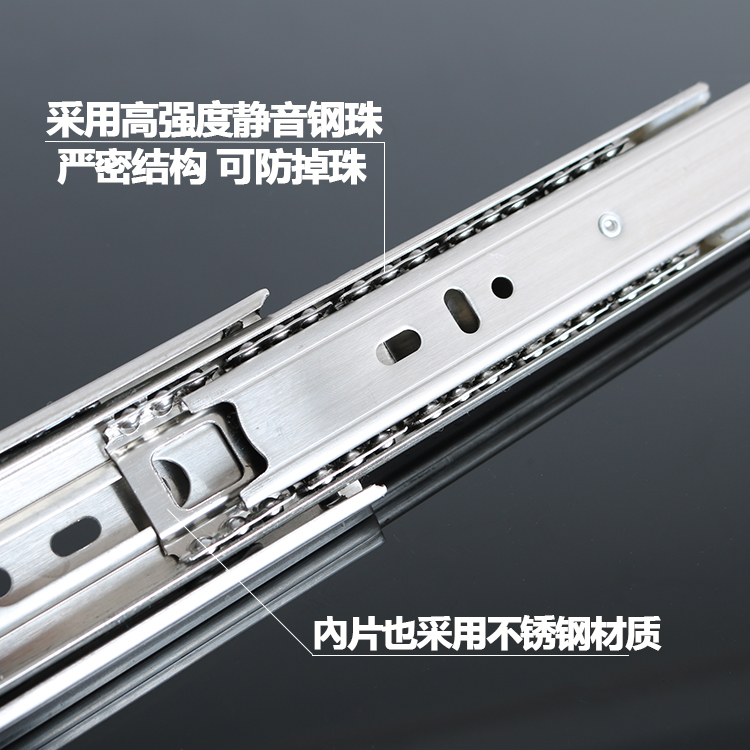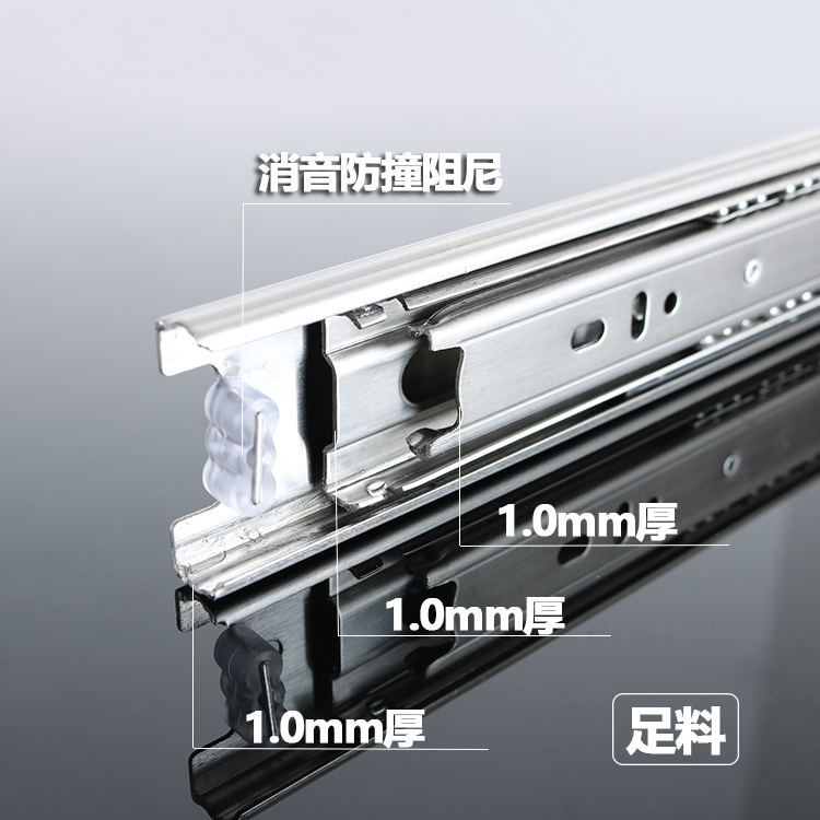 Drawer track damping stainless steel three-rail keyboard Ball rail chute Home innate chute thickened slide rail pulley