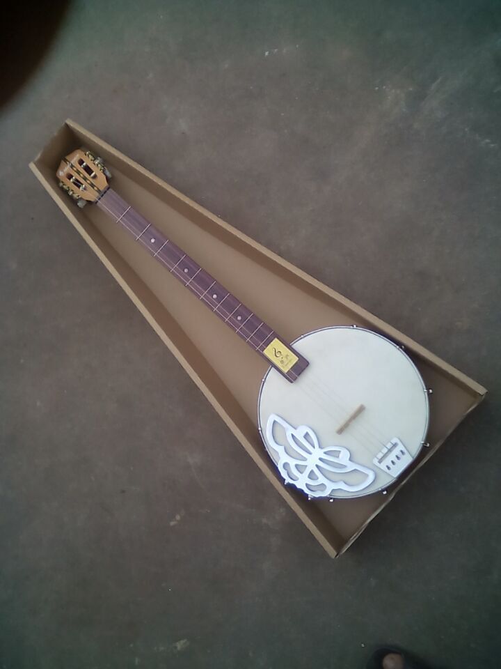 Xiongxing helped Qinqin Guangdong theatre goat-skin four string piano old man playing instrument to send Qinqin bag