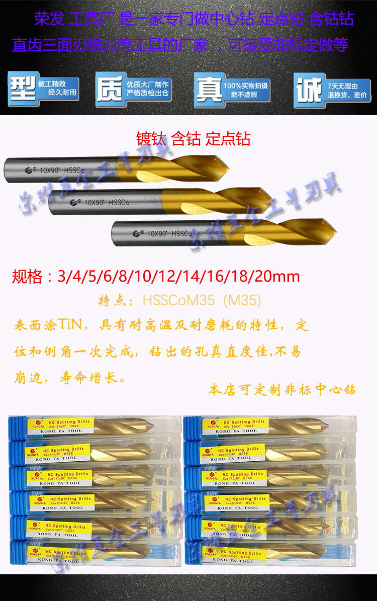 90 degrees Cobalt Plated Titanium Lengthened Centering Drill Fixed Drill Center Drilling 3 4 5 6 8 10 12 * 120 * 150mm