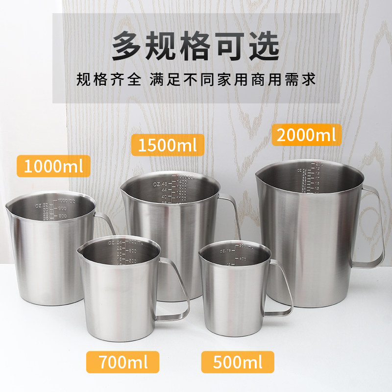 Thickened 304 stainless steel measuring cup 2000ml milk tea coffee quantity cup with scale 2L Lafa cup experimental cup