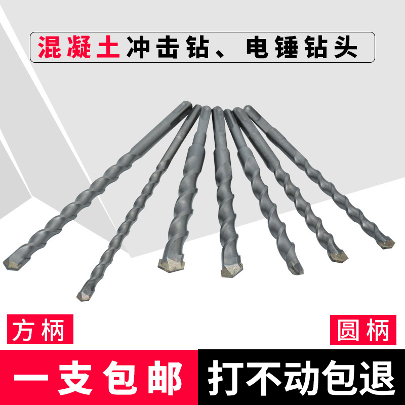 Extended square shank four-pit rotary hammer drill bit Brick wall concrete wall through-wall drilling drill Round shank two-pit impact drill