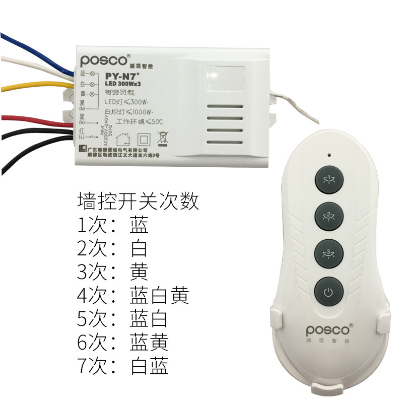 Pu Xiang Control wireless remote control switch 220V Two-way three-way electric lamp sectional device LED lamp double-cut remote control