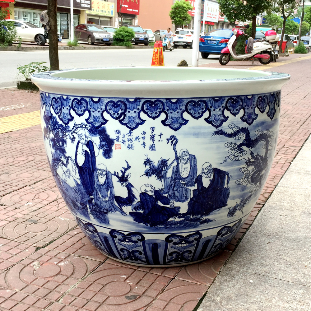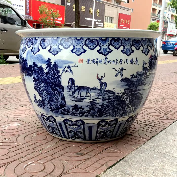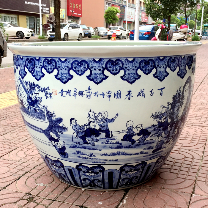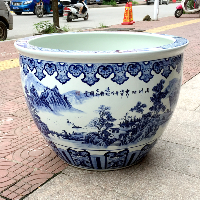 Jingdezhen ceramic blue and white large water tank 1 meter lotus koi tank goldfish tank backyard garden water lily tank