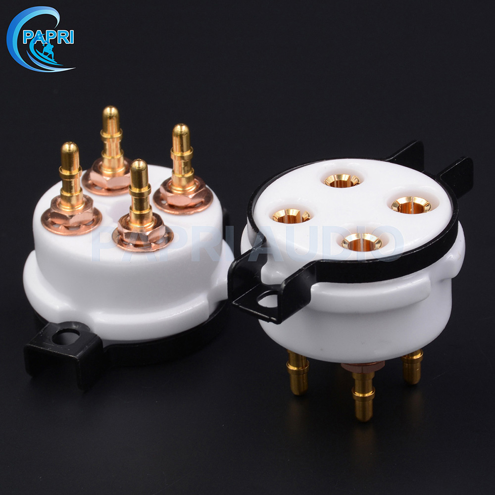 4-foot vacuum tube seat EIZZ ceramic pure copper gilded feet 4-foot tube socket 300B 300B 2A4 5Z3