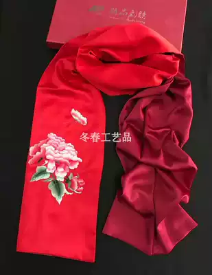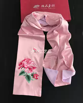 Loss-making promotion Suzhou embroidery Su embroidery silk scarf peony abroad gift long version of women's silk scarf Suzhou specialty