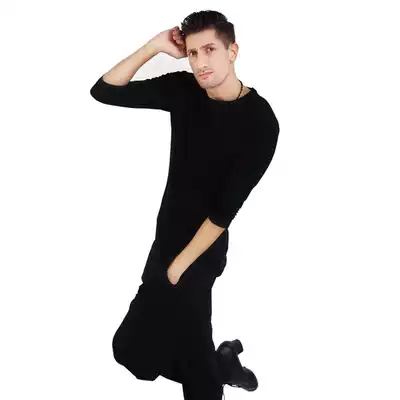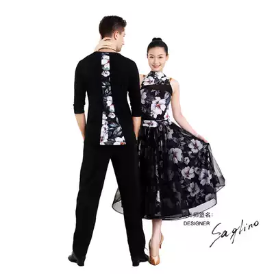Shani Latin modern dance practice suit top adult men spring and summer 2018 casual printing personality three-point sleeve top