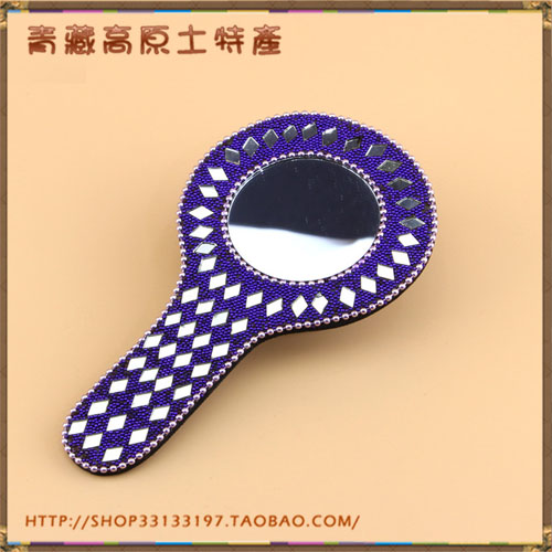 Imported from India Handmade Indian multicolored small flower handle makeup mirror Mirror with various colors available