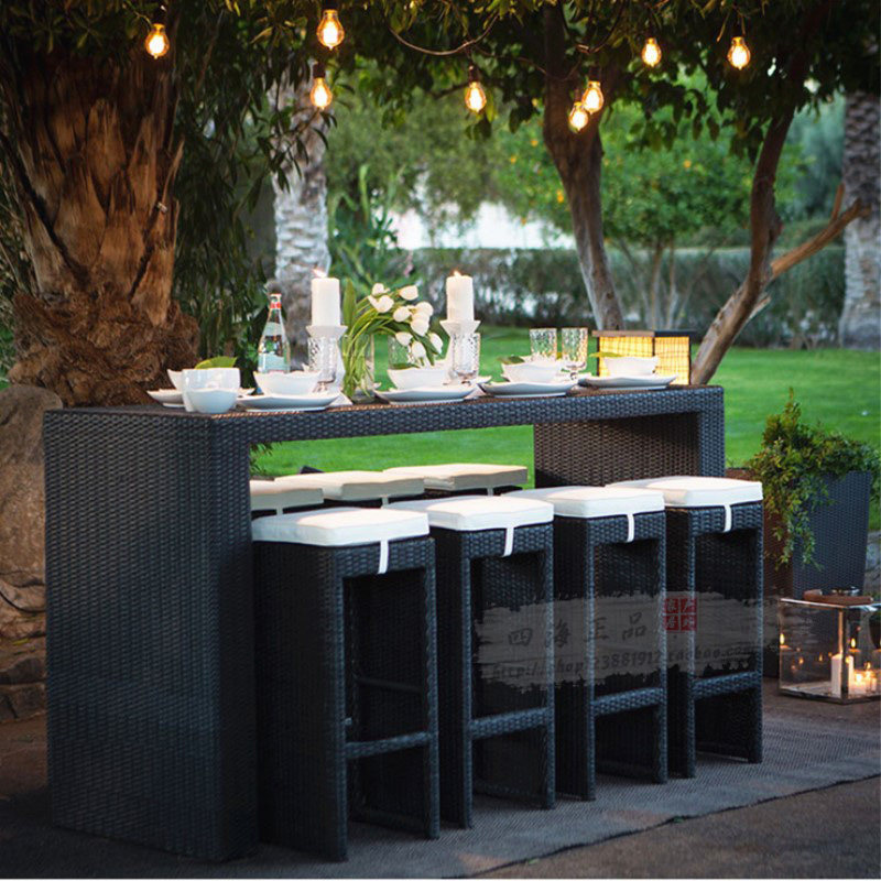 Outdoor table and chair rattan chair bar balcony waterproof rattan terrace villa modern garden courtyard leisure table and chair combination