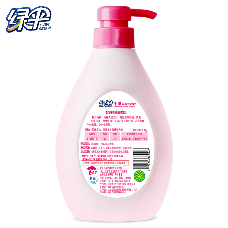 Green umbrella underwear wash 480g bottle men's and women's special hand wash underwear laundry liquid phosphorus-free cleaning liquid clean anti-static