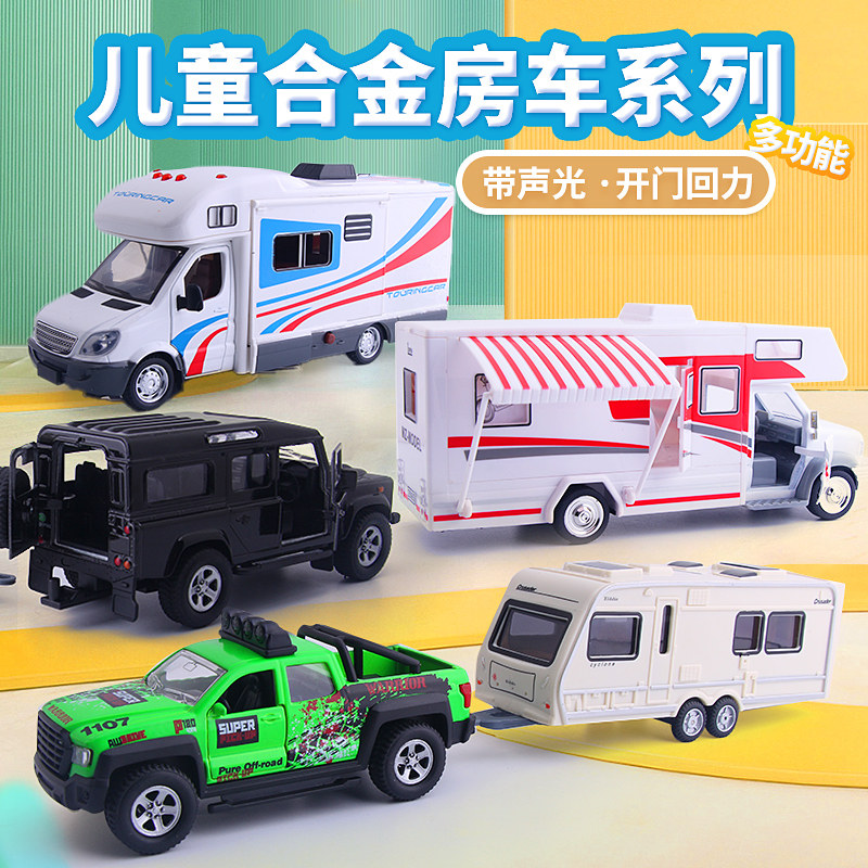 Luxury car children's toy travel bus alloy car simulation model door opening sound and light pull back