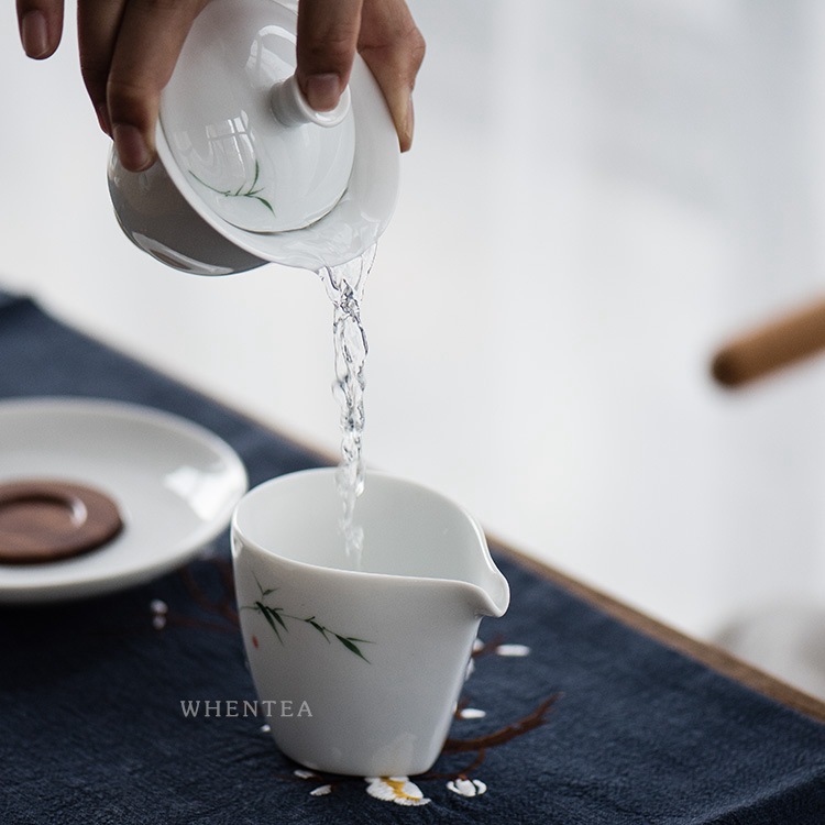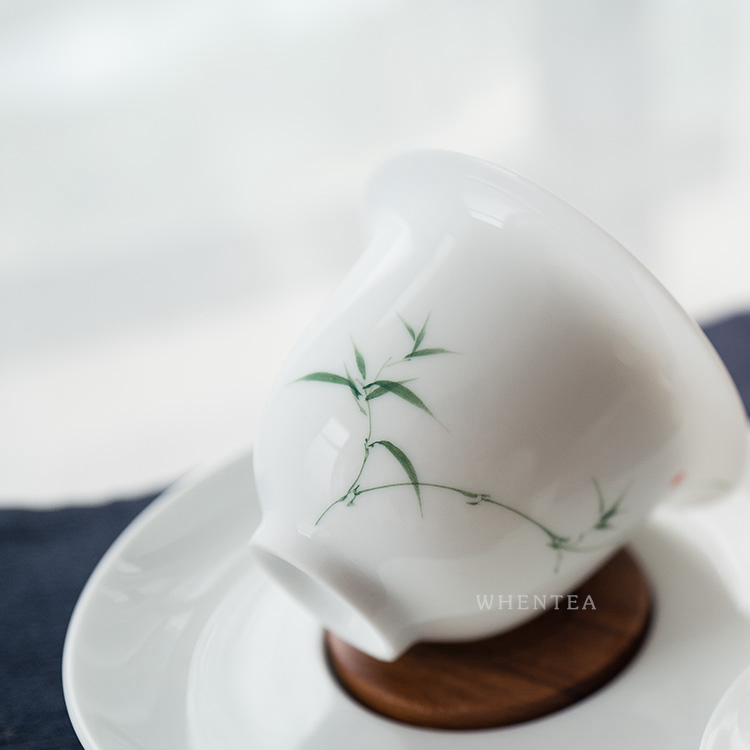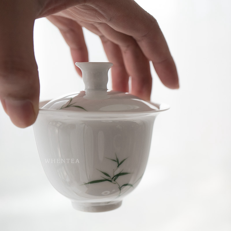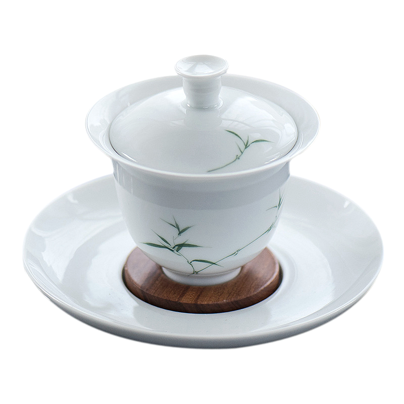 Smells say) Jingdezhen City Qingzhu Green Bamboo Triple cover Bowl Pure Hand Painted Glaze Lower Color Ceramic White Porcelain Tea Tea Cup Tea Bowl