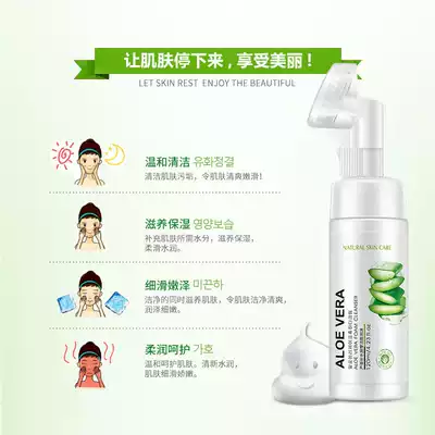 Aloe Vera makeup remover foam moisturizing moisturizing facial cleansing bubble facial cleanser men and women with brush head deep cleaning oil control Korea Korea