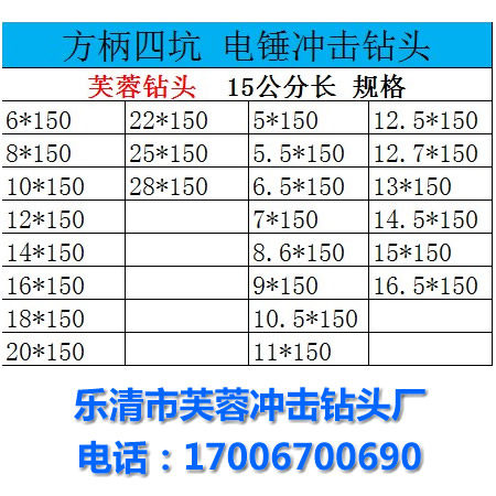 Square handle four-pit electric hammer head 15 cm long square head hibiscus alloy concrete impact drill 5 6-28*150mm