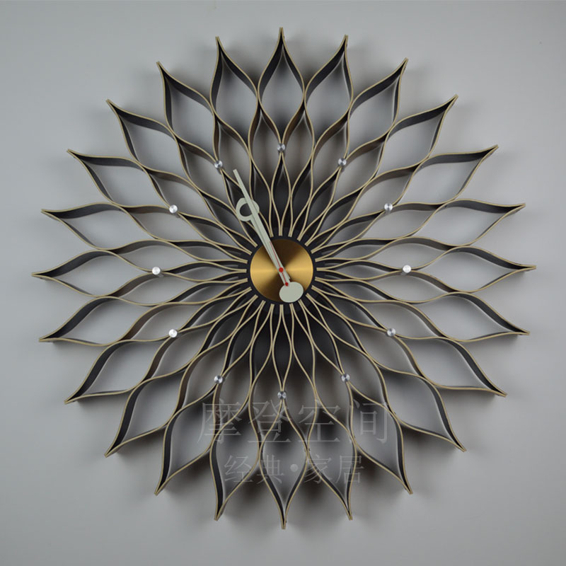 Nordic fashion creative simple wall clock sunflower hour clock clock Nelson model room living room quartz clock wall clock
