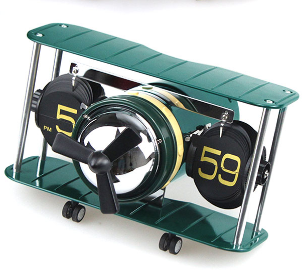Miaoke retro German aircraft head model type automatic page turning watch European simple living room biplane fighter seat clock