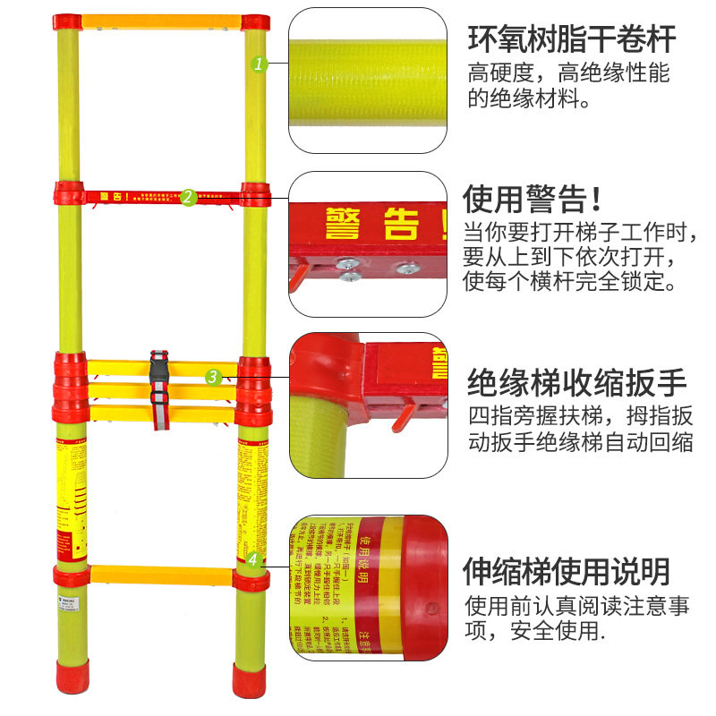 Electric power insulation telescopic ladder fish rod ladder stretch ladder domestic ladder engineering ladder with ladder electrician ladder