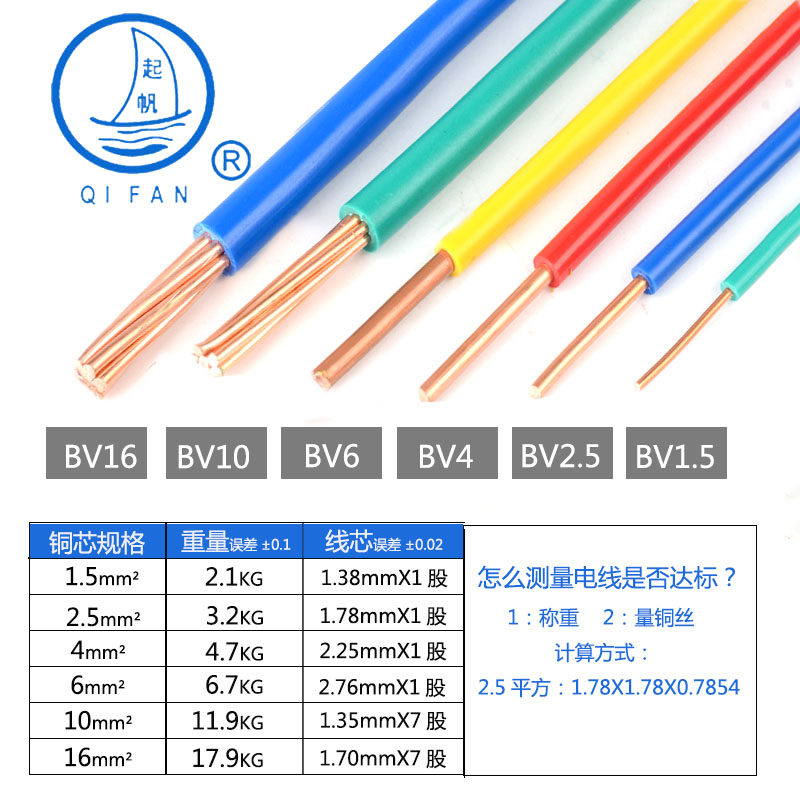 Pickup wire BV1 5 2 5 4 square home lighting single-share copper core hard line 100 meters double color