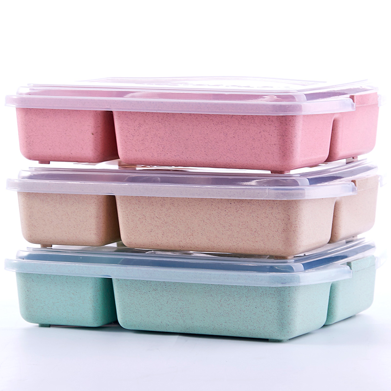 Straw Lunch Box With Lid Simple Canteen Seal Dinner Plate Students Rectangular Compartment Lunch Box Microwave refreshing box