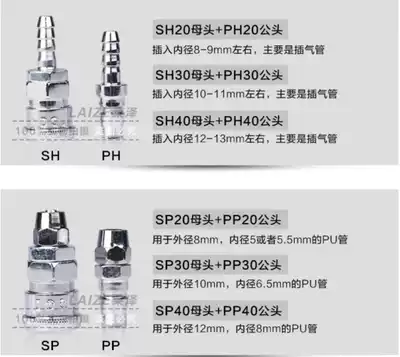 PH-40 Male head(inner diameter 12mm trachea) PM-40 Male head(external thread 4 points) SM-40 female head(external thread 4 points)SH-20 female head(inner diameter 8 points