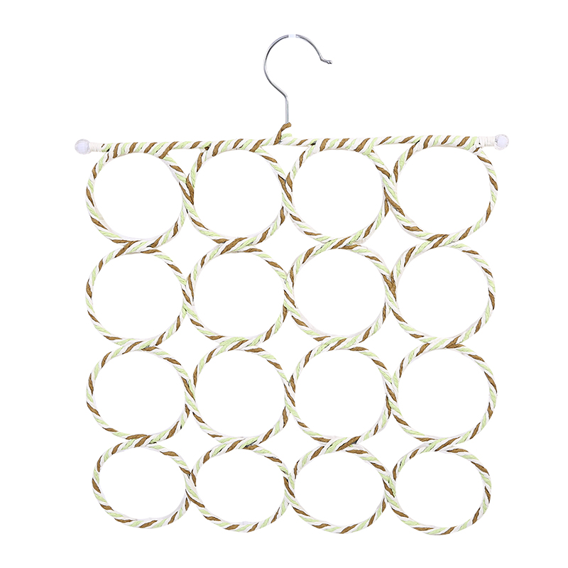 Multifunctional Color Rattan Woven Scarf Rack Foldable 28 Loop Ring Scarf Rack Belt Hanger