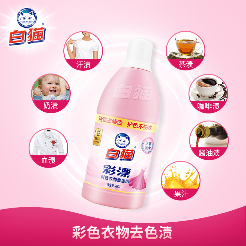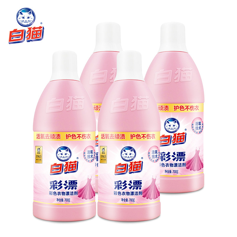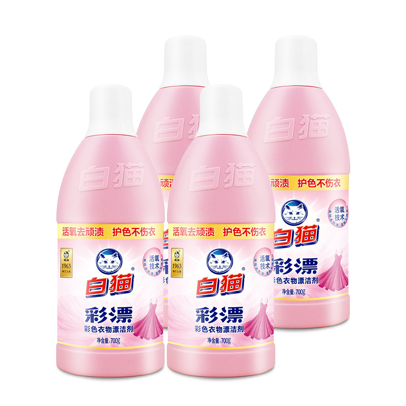 White cat color bleach liquid 700g * 4 bottles of stain removal, yellowing, coloring, coloring, staining, stain removal, and rinsing