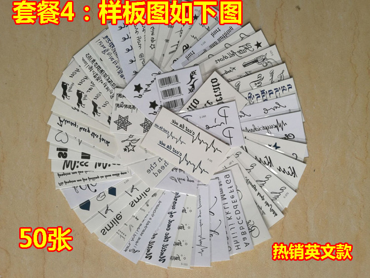 Tattoo stickers waterproof men and women long-lasting arm English letter totem couple Korean collarbone legs 50 sets