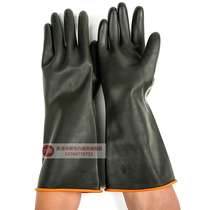 North tower Latex Gloves Resistant acid Gel Gluing Black Industry 36 lengthened thickening Lauprotect Industrial Rubber