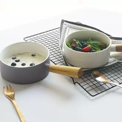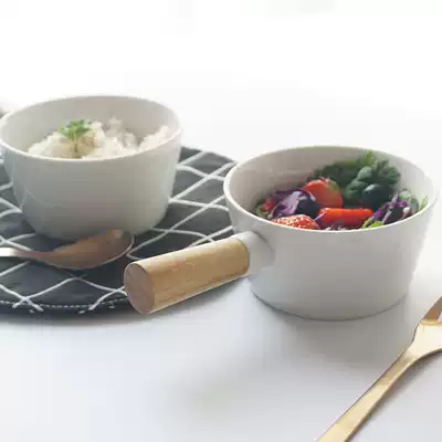 Creative home wooden handle with handle salad bowl Japanese dessert bowl baked rice bowl round good quality salad bowl
