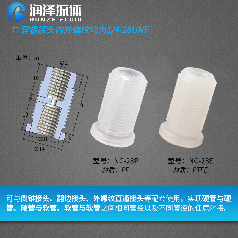 Plastic wearing plate joint 1 4-28 threaded hard pipe Teflon imported PP PTFE material straight through plate joint-Taobao