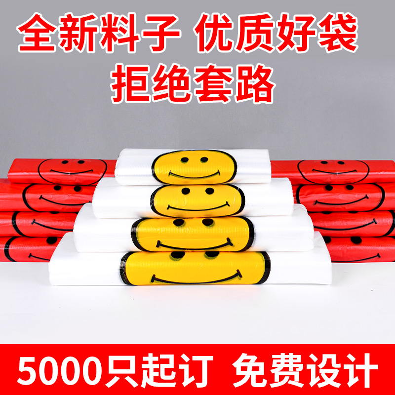 Transparent smiley face bag vest bag convenient vest plastic bag in the large supermarket shopping bag custom thickened