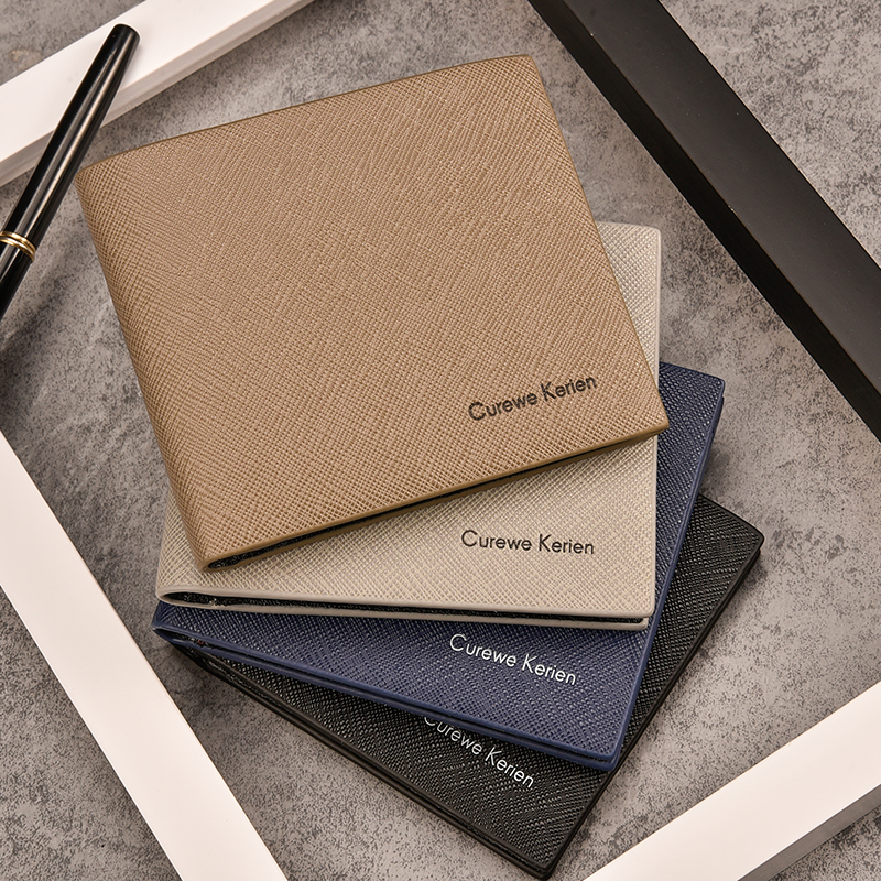 New wallet men's short section simple cross pattern wallet horizontal section multi-card slot fashion creative student ticket folder thin tide