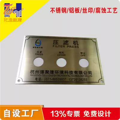 Customized 316 stainless steel corrosion nameplate engraving laser equipment identification plate Aluminum plate lettering non-fading waterproof