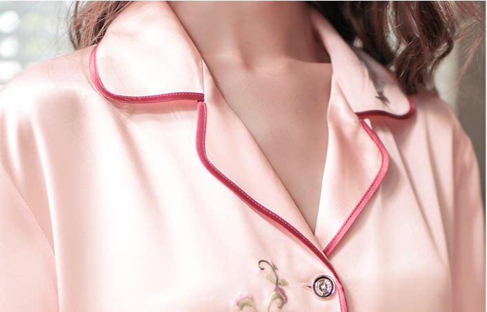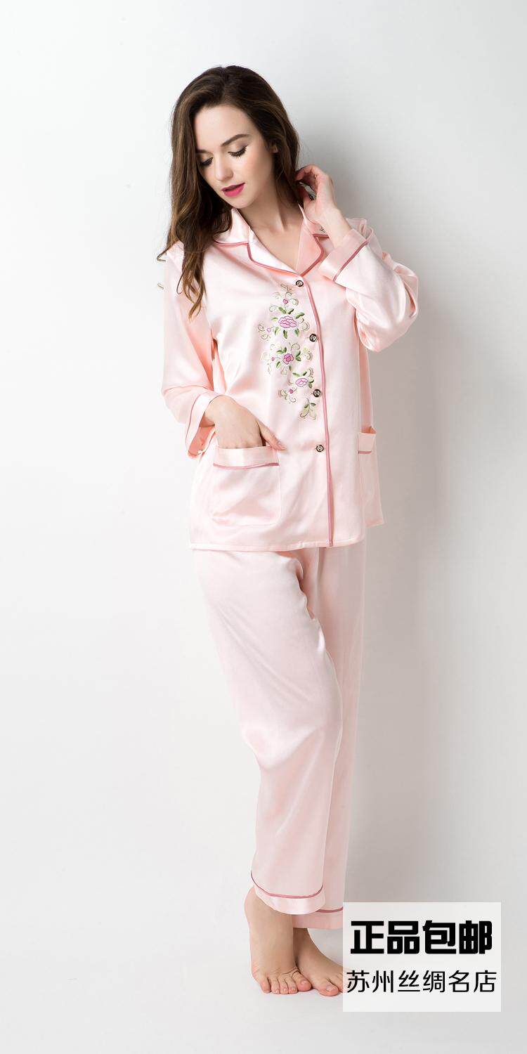 Suzhou Silk Famous Products Heavy Pound Real Silk Sleeping Clothes Mulberry Silk Pure Handmade Embroidered Women's Home Conserved Spring Autumn New