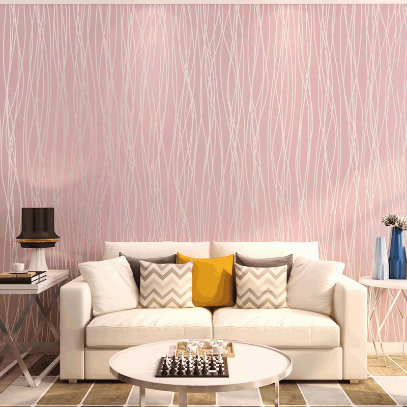 Living room wallpaper modern simple and warm home solid color gray 3d vertical stripe beauty salon bedroom non-woven wallpaper