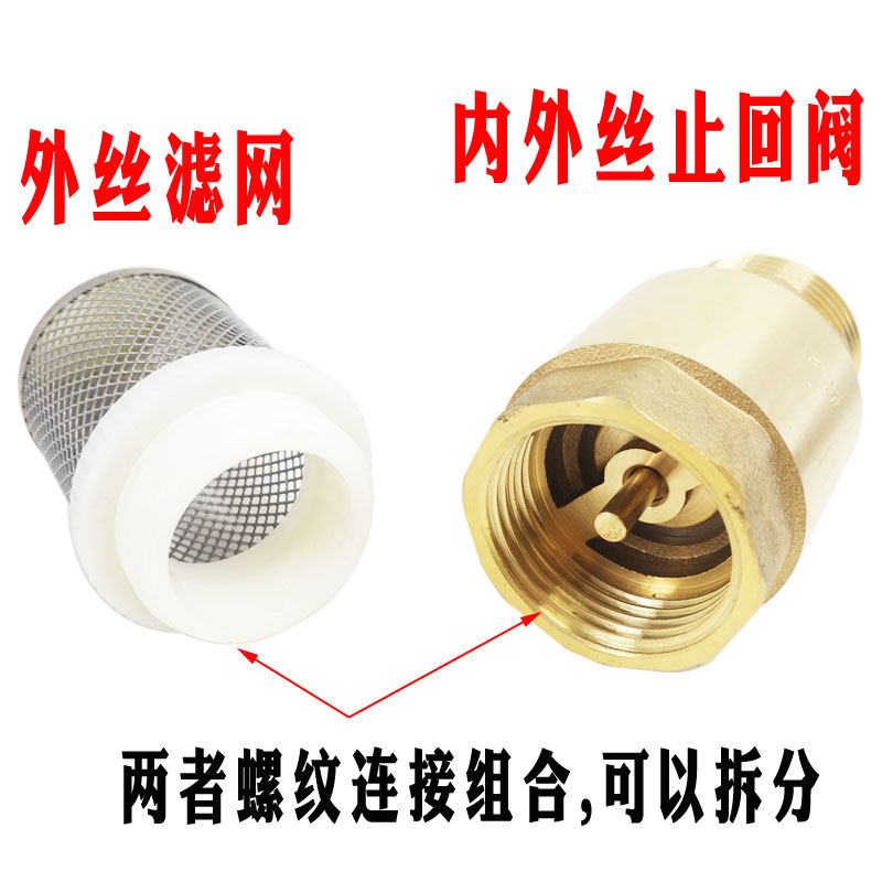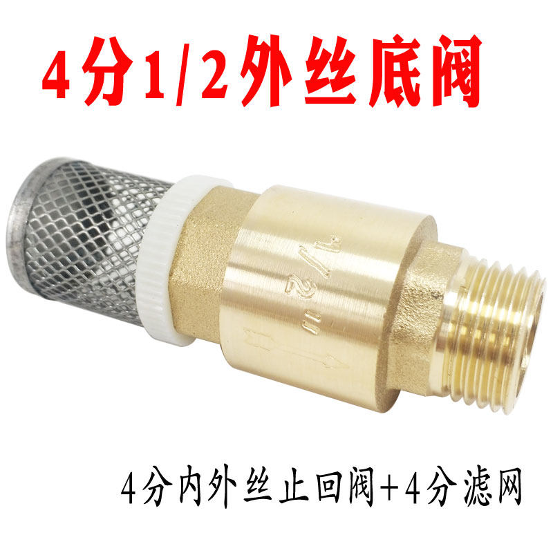 Outer wire copper bottom valve with filter screen well bottom water pipe filter one-way check valve self-priming pump spring threaded copper core 4 minutes 6