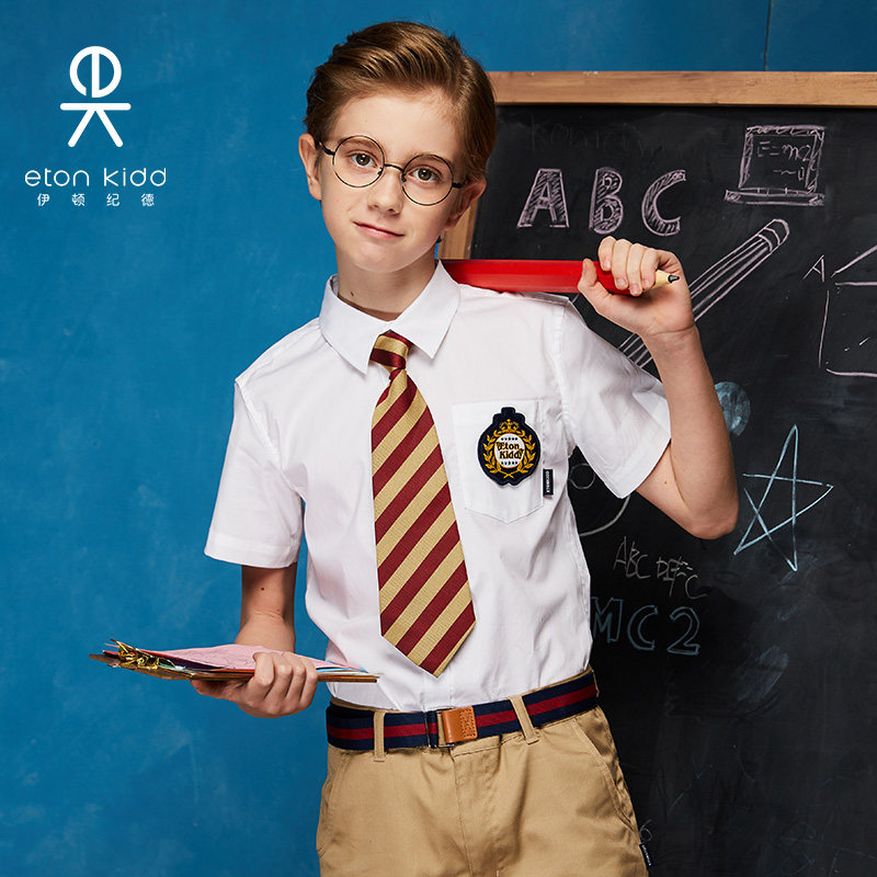 Eaton Gide standard children's clothing children's classic cotton short-sleeved shirt male big boy short-sleeved white shirt 10C101