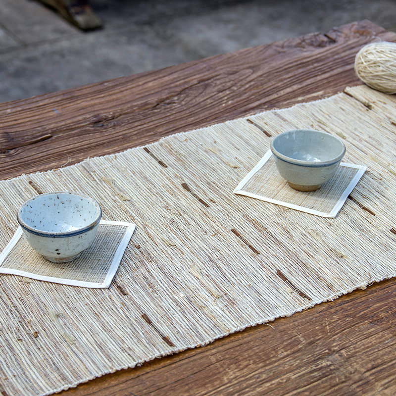 Handmade Shaab Hemp Cloth Table Flag Tea Banner Sesame Cloth Insulation Mat Modern Brief Chinese Fields Garden Dry Bubble Tea Mat Tea Mat-Taobao