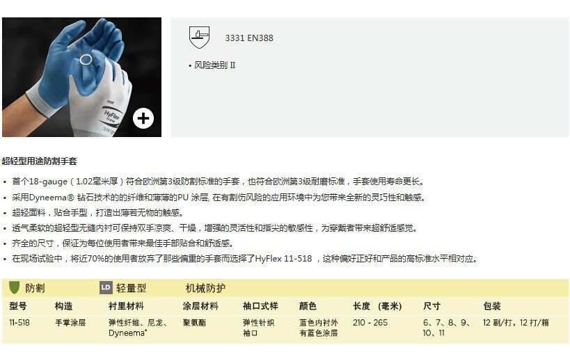 ANSELL Anthill 11-518 Anti-cutting gloves PU coated abrasion-proof assembly punching 3-level anti-cutting gloves