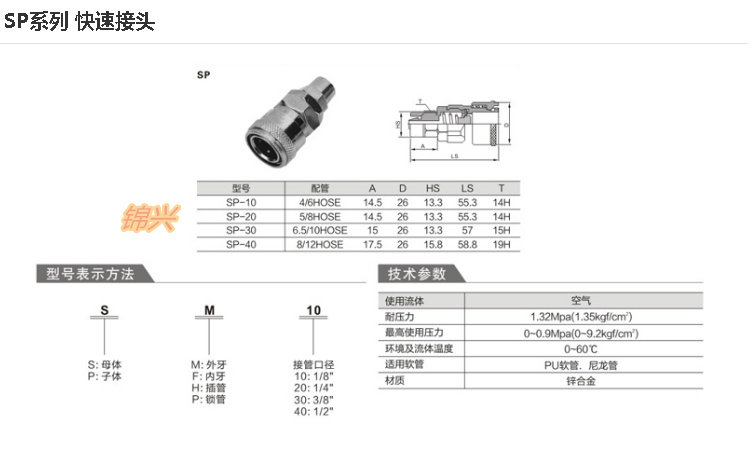 SP10 20 30 40 40 quick joint pneumatic joint mother head quick-insert head windpipe inserts 6 8 10 12