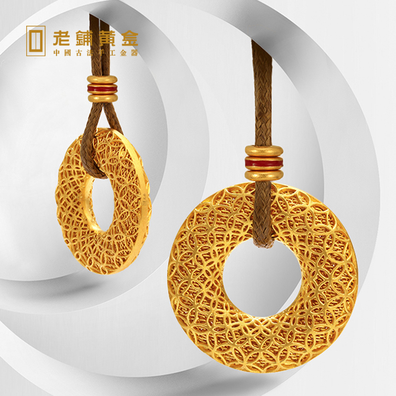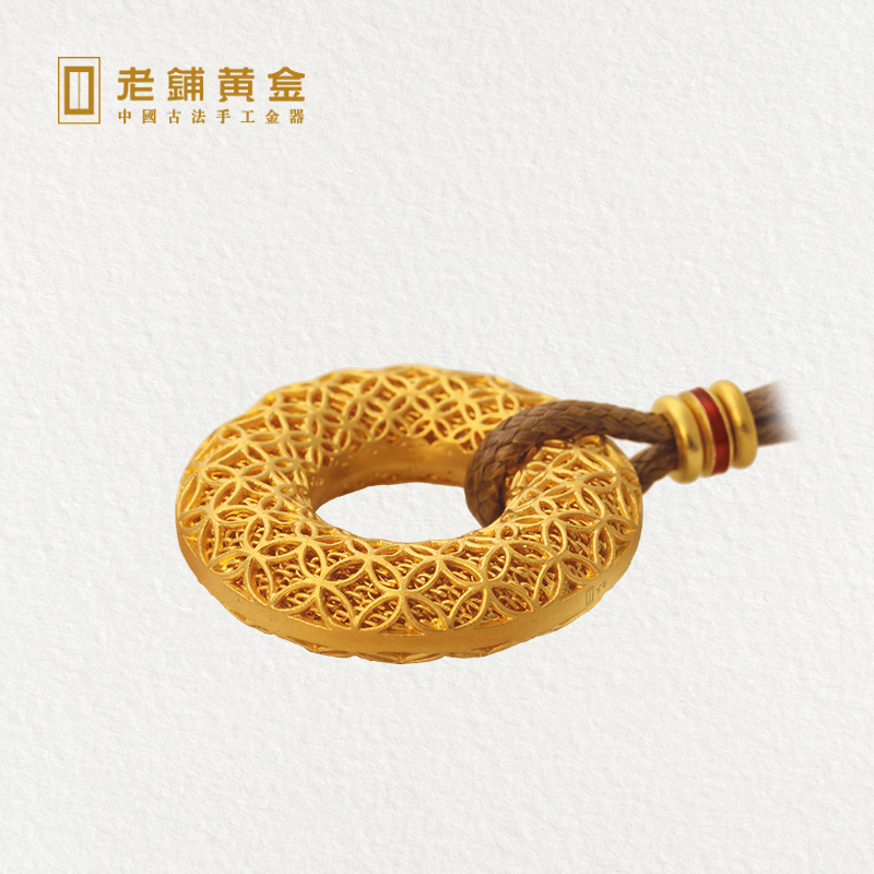 Old Paving Gold Ancient Method Handmade Flower Silk Safe Buttoning Foot Gold Pendant Gold Necklace Ornaments Male And Female Universal