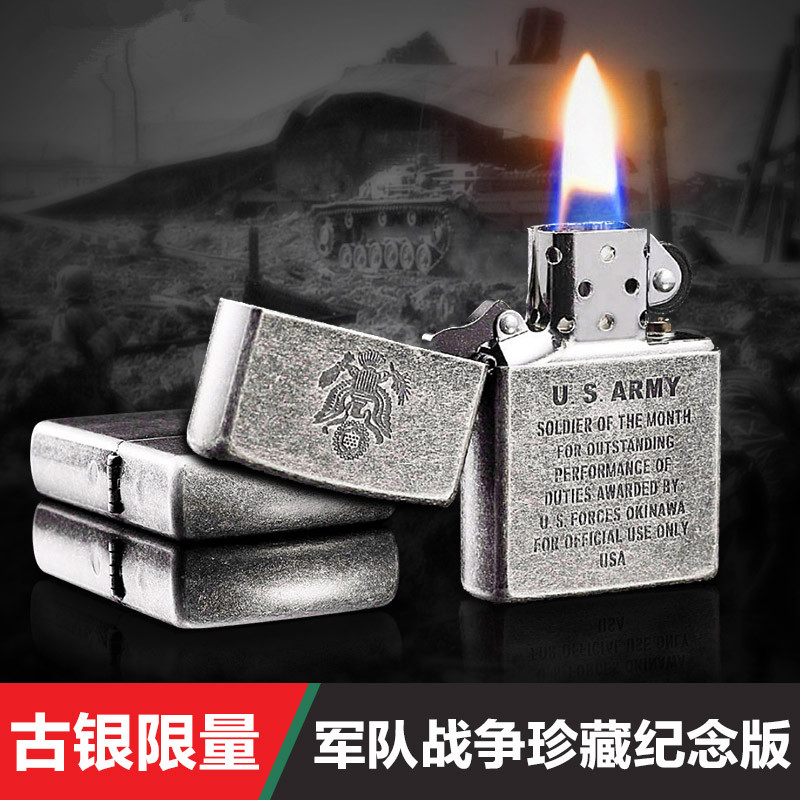 Genuine zippo Army War Collection Commemorative Edition lighter ancient silver limited edition U.S. Navy, Army and Air Force badges