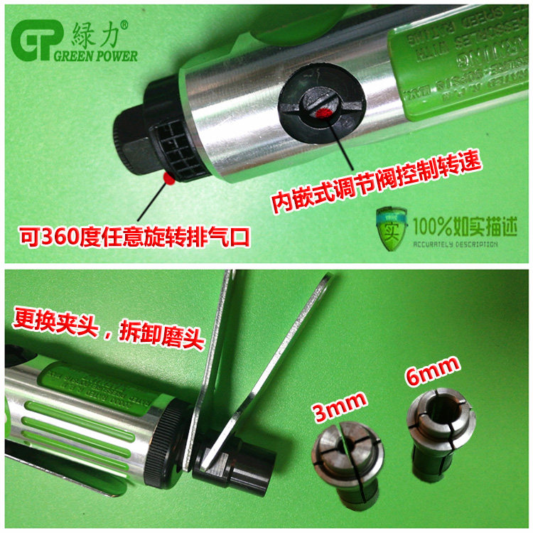 Green Force Pneumatic Sander 313206 Engrave Mill 313206K Suit Wind Mill High Speed Gas Mill Grinding