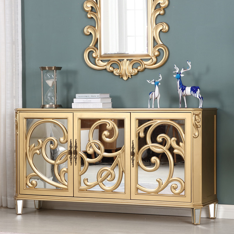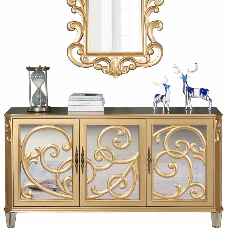 Inrock Mirror Entrance Cabinet Solid Wood Neoclassical Sideboard Villa Large Bedroom Foyer Decorative Cabinet Customization