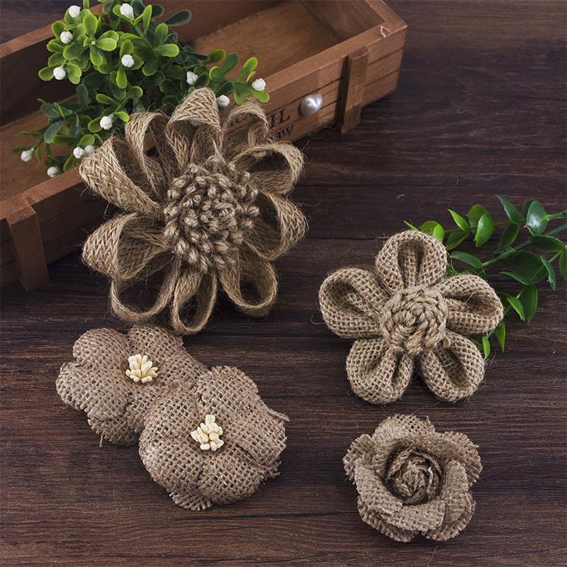 Natural eco-friendly jute thread linen flower handmade diy accessories bottle crafts decorative accessories rose flowers