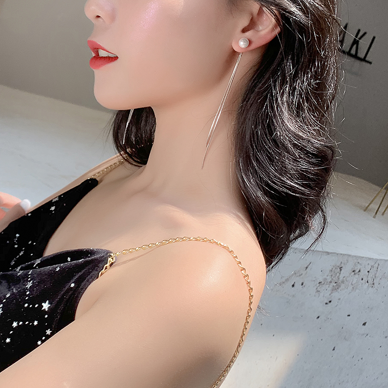 Earrings Advanced sensation Light extravagant crowdPearl Long version Stream SuKorean temperament 100 Hitch Pendant Ear Dressing Female Brief