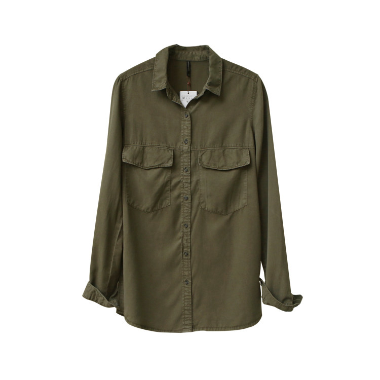 Lazy wind denim army green shirt women's 2021 new Han fan long-sleeved loose medium-long version chic spring and autumn top