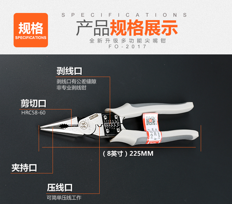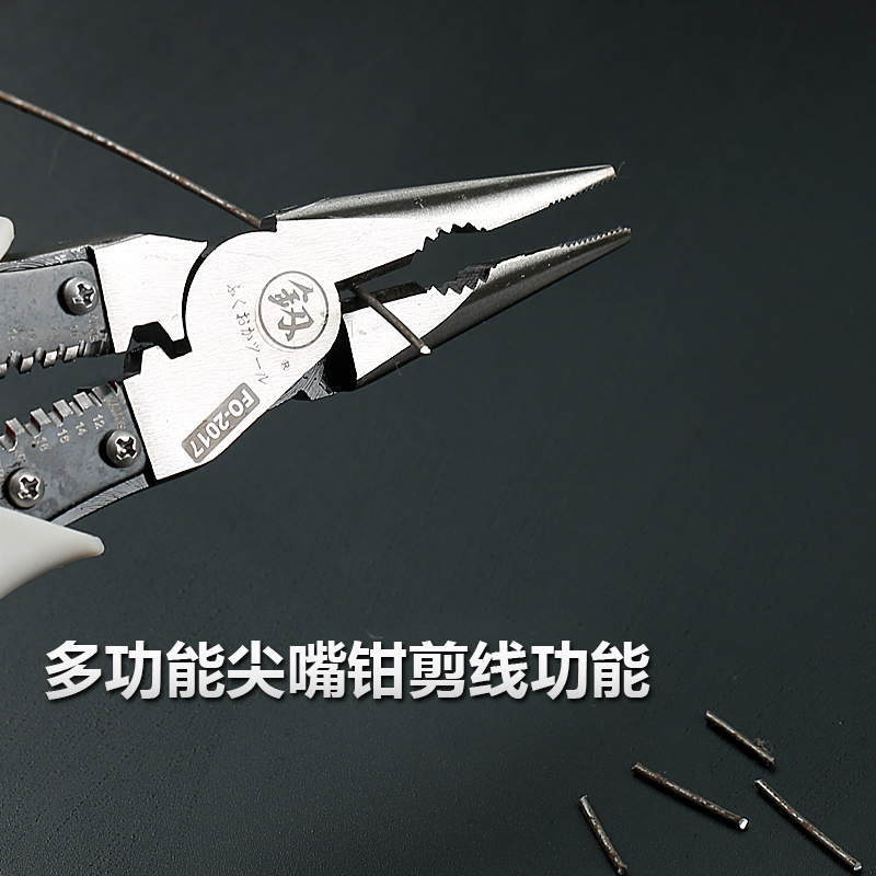 Japan Fukuoka 8 6 inch multifunction sharp mouth pliers labor-saving peeling wire crimping pliers five all-in-one sharp mouth pliers electrician pliers